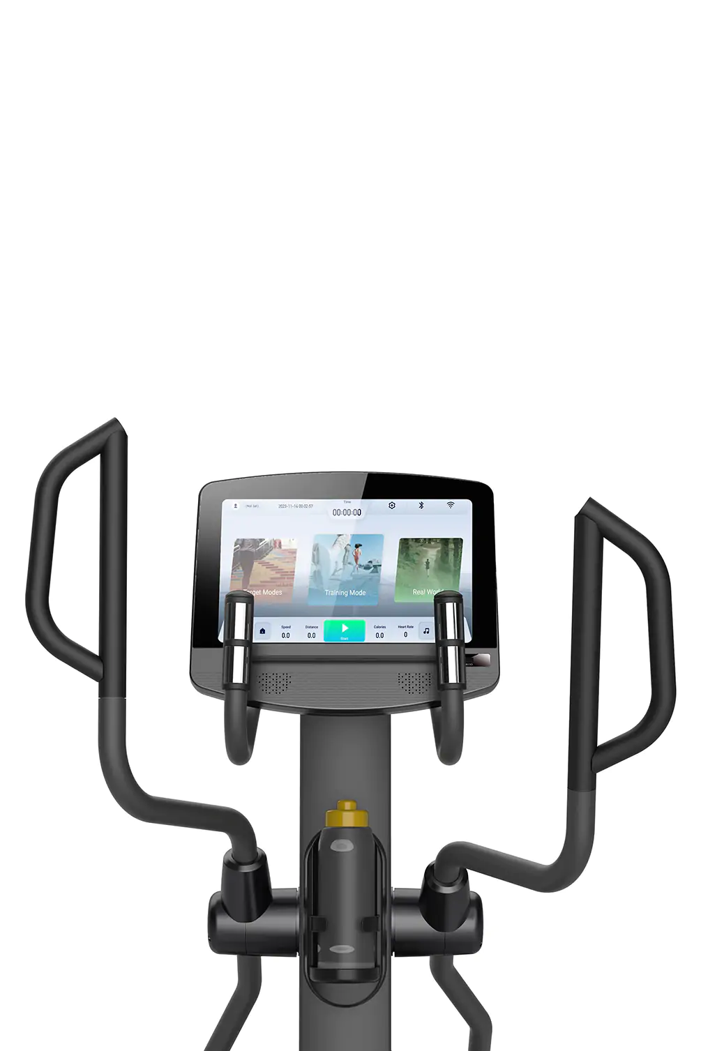 • Accesorios: Conexión Wi-Fi + Apps preinstaladas (Chrome, Netflix*, Spotify*, Facebook, Amazon Video*, YouTube, Twitter, Kinomap*, Instagram, Cast Screen) / altavoces de audio Hi-Fi / carga USB para móvil / salida de auriculares jack / portabotellas / compartimento para objetos-smartphone / power incline (regulación electrónica del carro de deslizamiento de pedales)